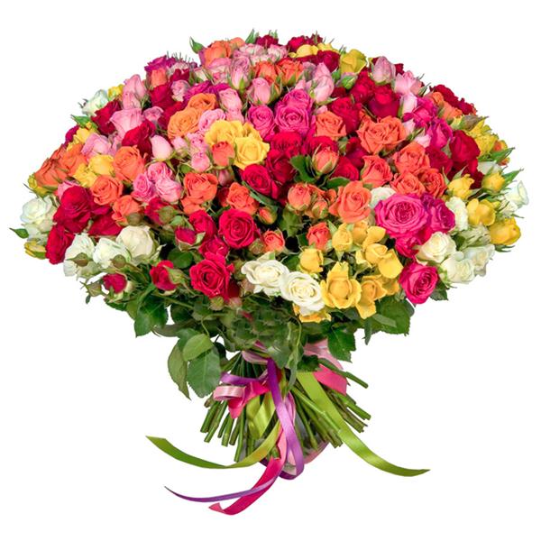 101 разноцветных кустовых роз