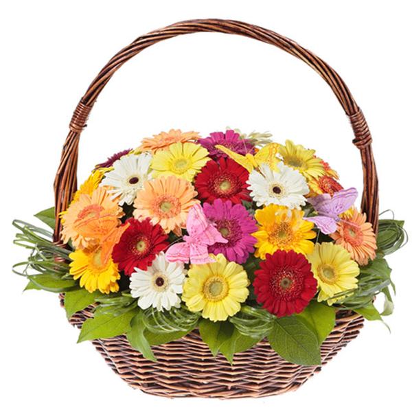 45 разноцветных гербер в корзине